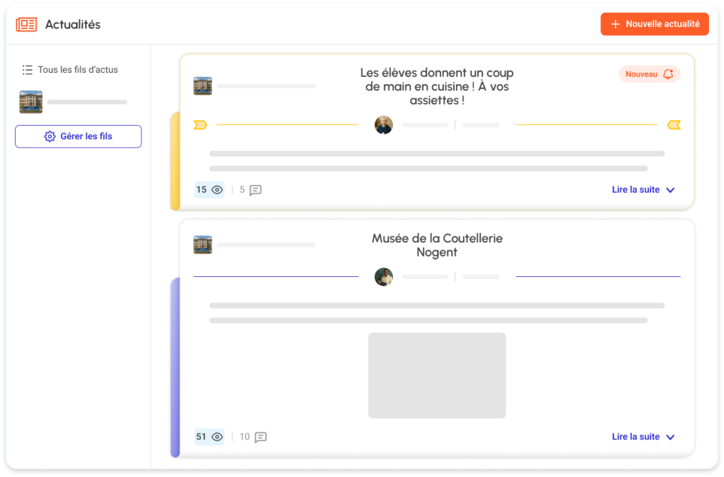- Le choix d’une date de fin de publication d’une actualité est désormais obligatoire. Chaque actualité est programmée pour expirer après 1 an, elle passe alors dans l’onglet “Expiré” pour les gestionnaires et s’affiche en rouge. Le gestionnaire reste maître du calendrier et peut prolonger la durée de visibilité en quelques clics, sans envoyer de nouvelle notification.